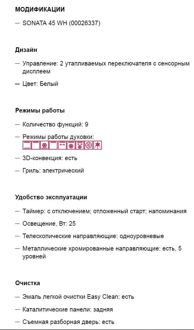 Электрический духовой шкаф Krona (Крона) SONATA 45 WH
