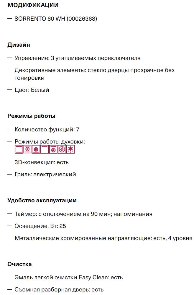 Электрический духовой шкаф Krona (Крона) SORRENTO 60 WH