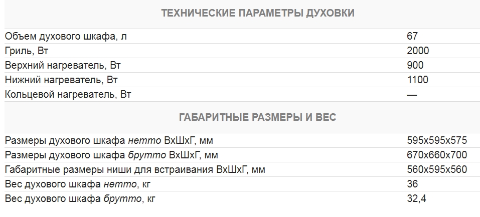 Объём духовки |