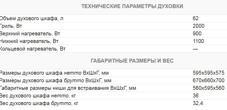 Объём духовки |