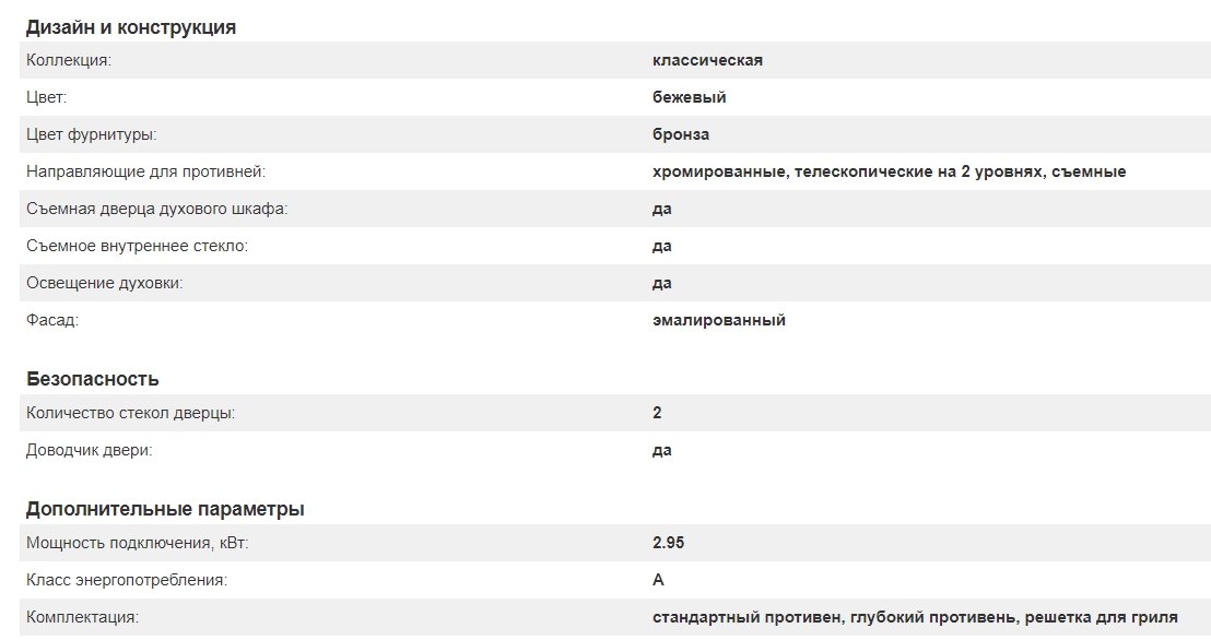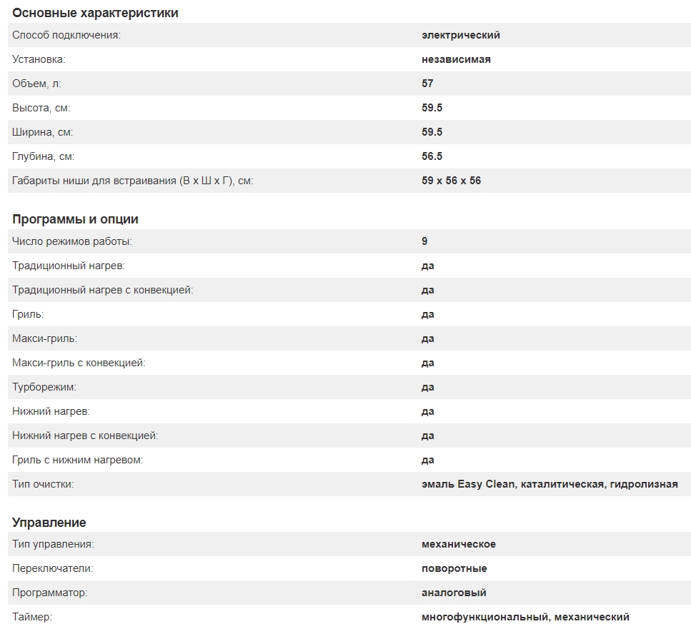 Объём духовки |