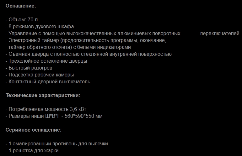 Объём духовки |