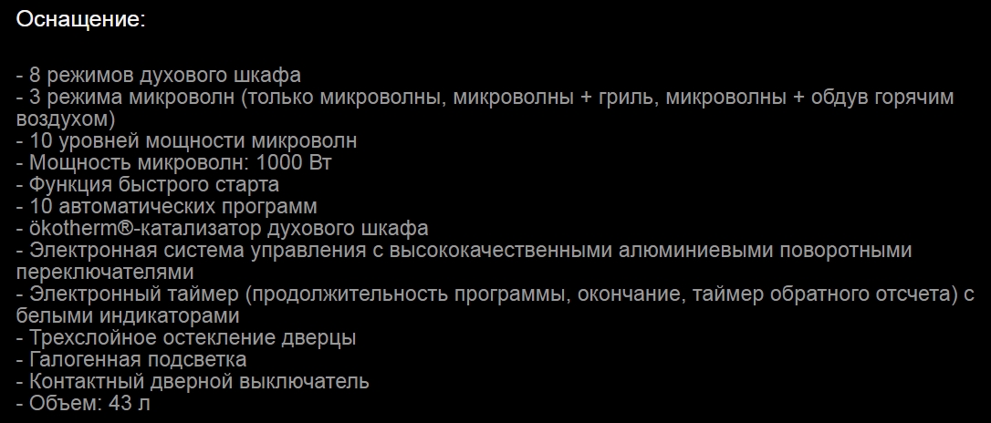 Объём духовки |