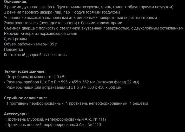 Объём духовки |