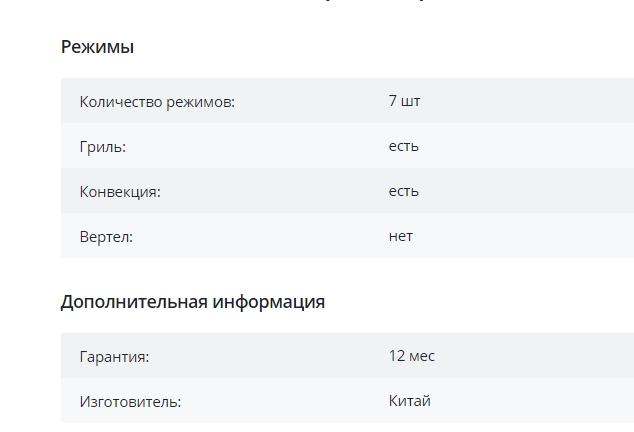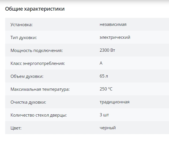 Объём духовки |
