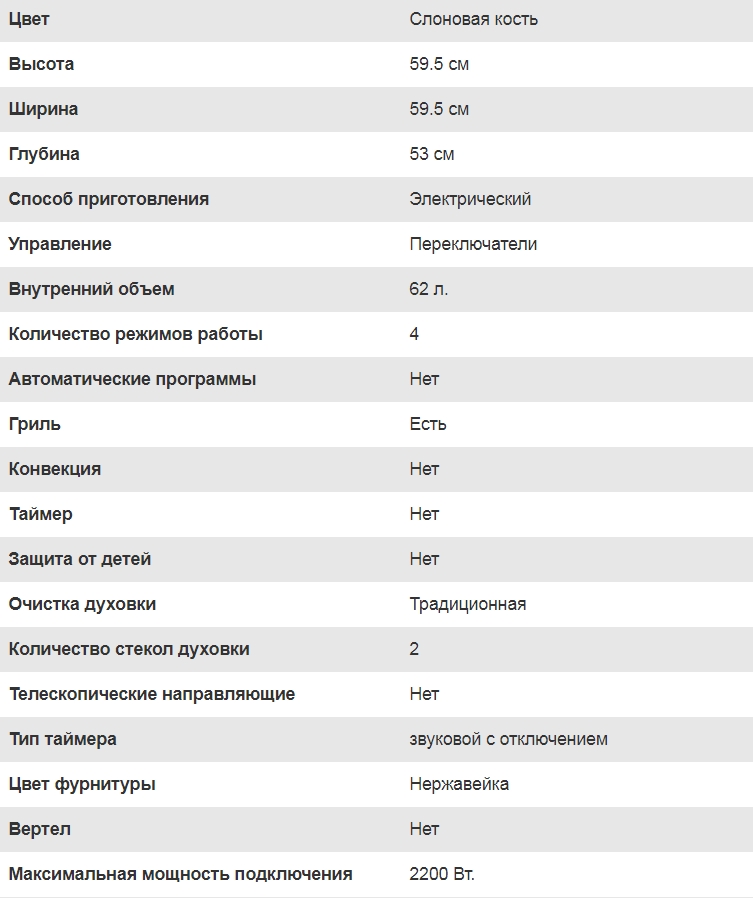 Объём духовки |