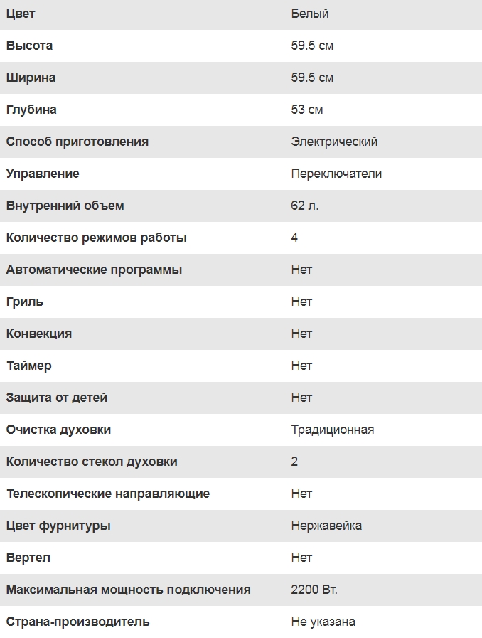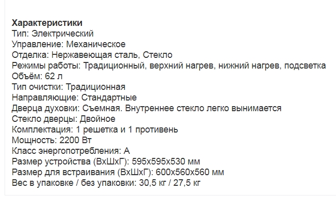 Объём духовки |