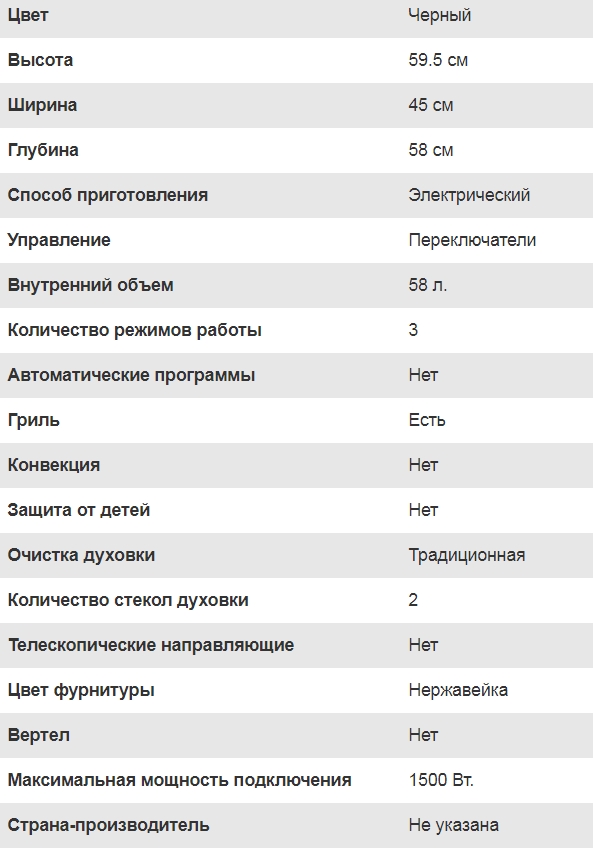 Объём духовки |