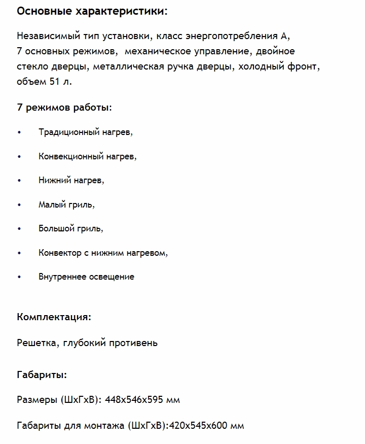 Объём духовки |