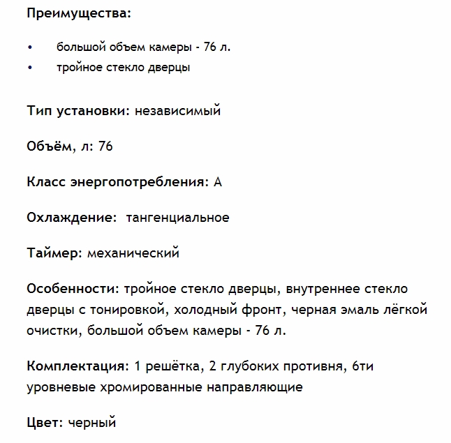 Объём духовки |