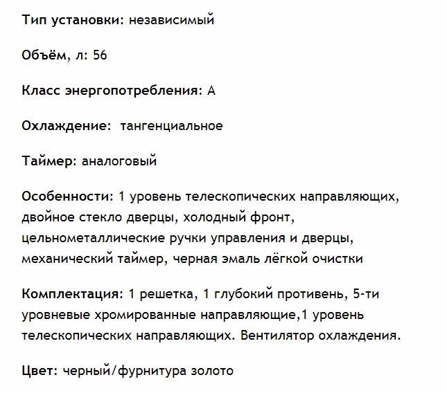 Объём духовки |