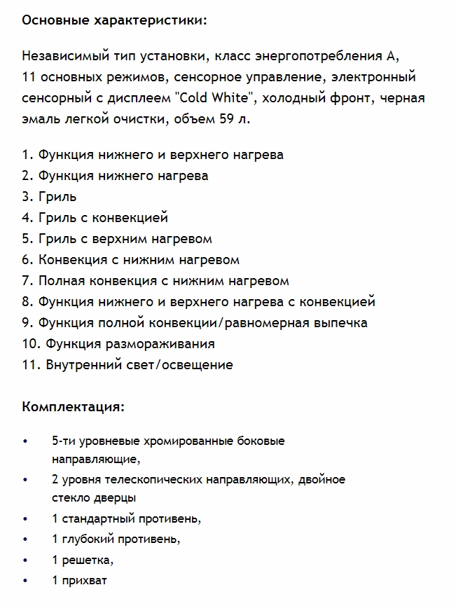 Объём духовки |