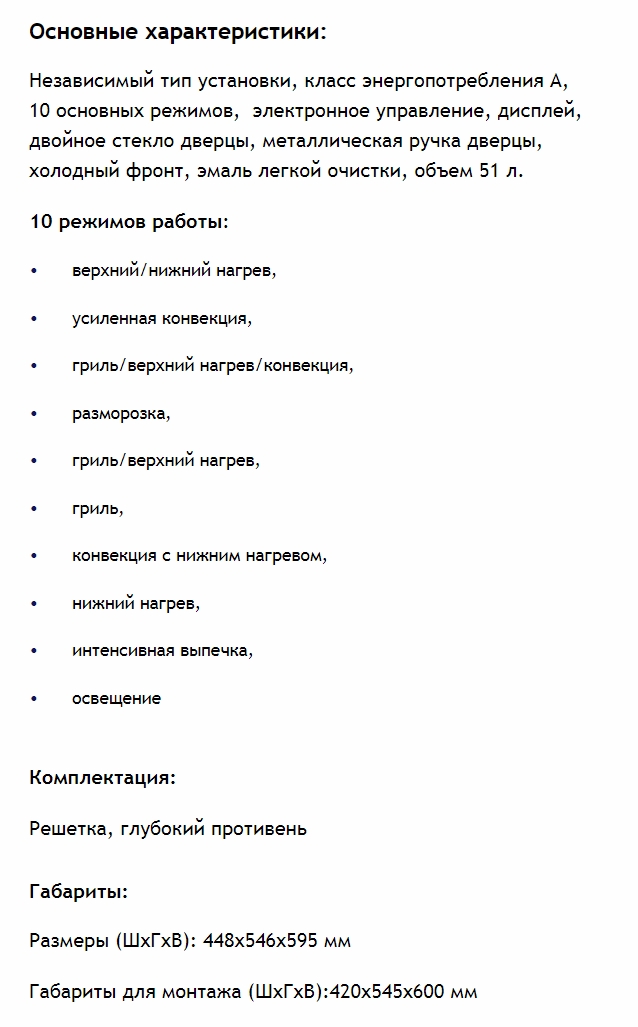Объём духовки |