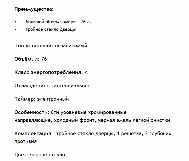 Объём духовки |