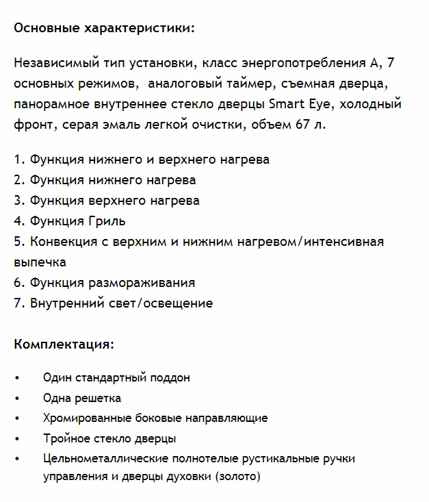 Объём духовки |