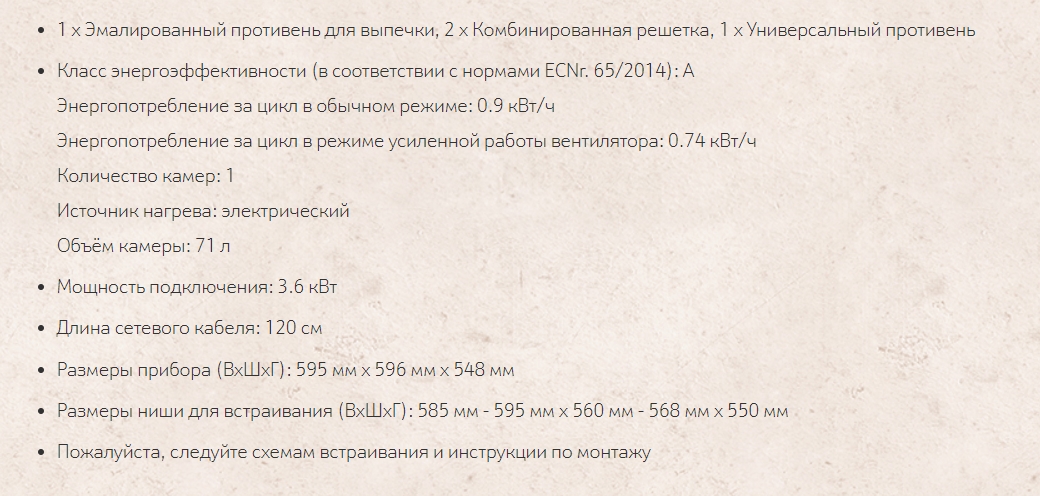 Объём духовки |