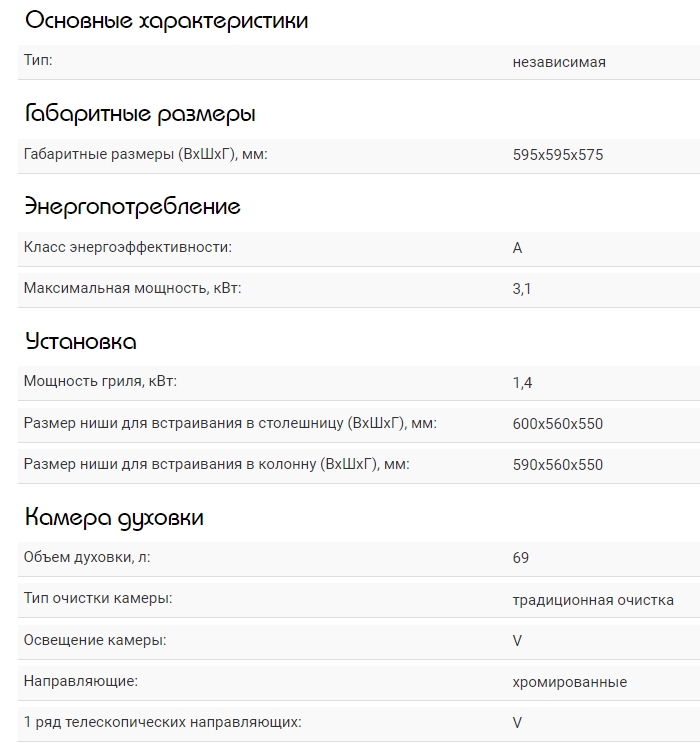 Объём духовки |