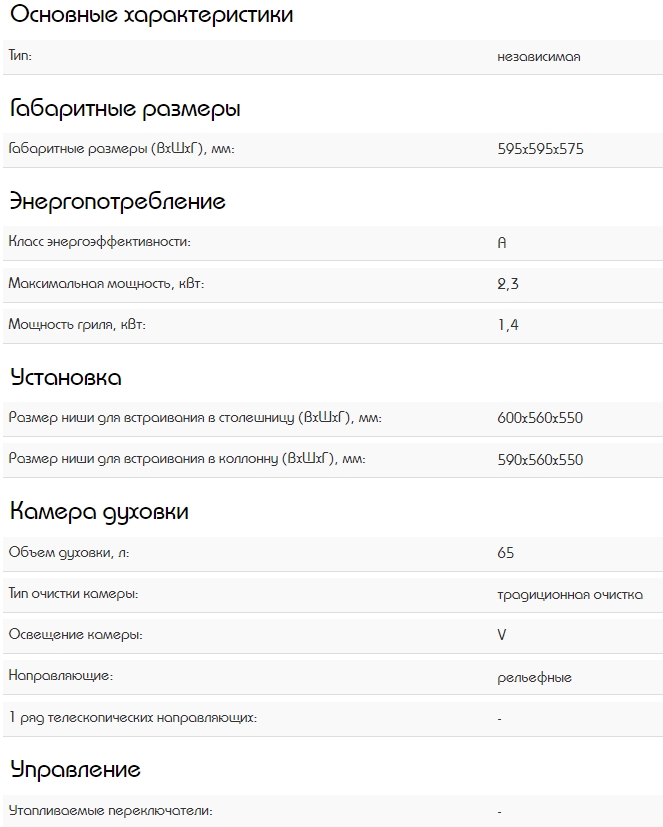 Объём духовки |