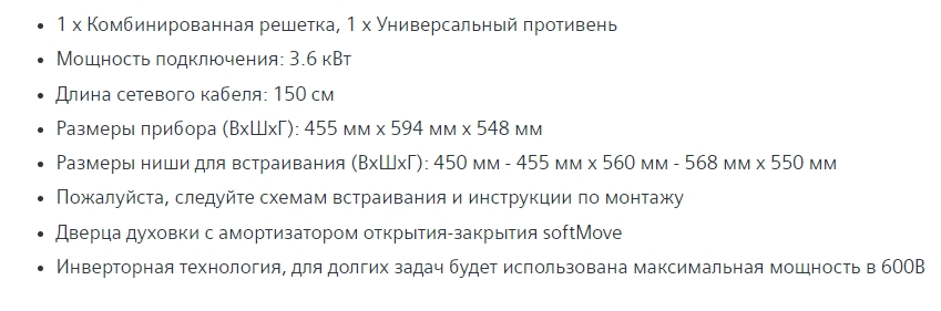 Объём духовки |
