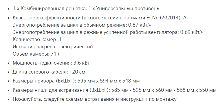Объём духовки |