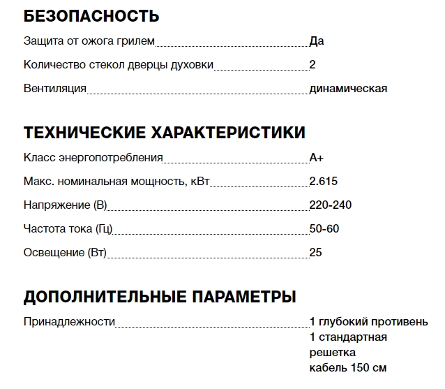 Объём духовки |