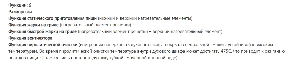 Объём духовки |