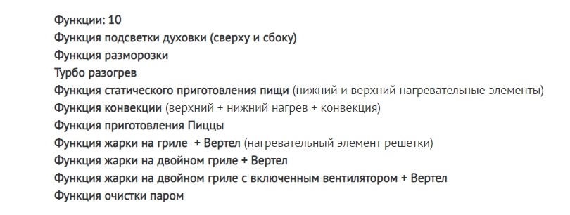 Объём духовки |