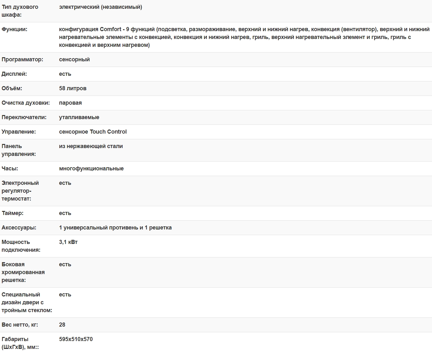 Объём духовки |