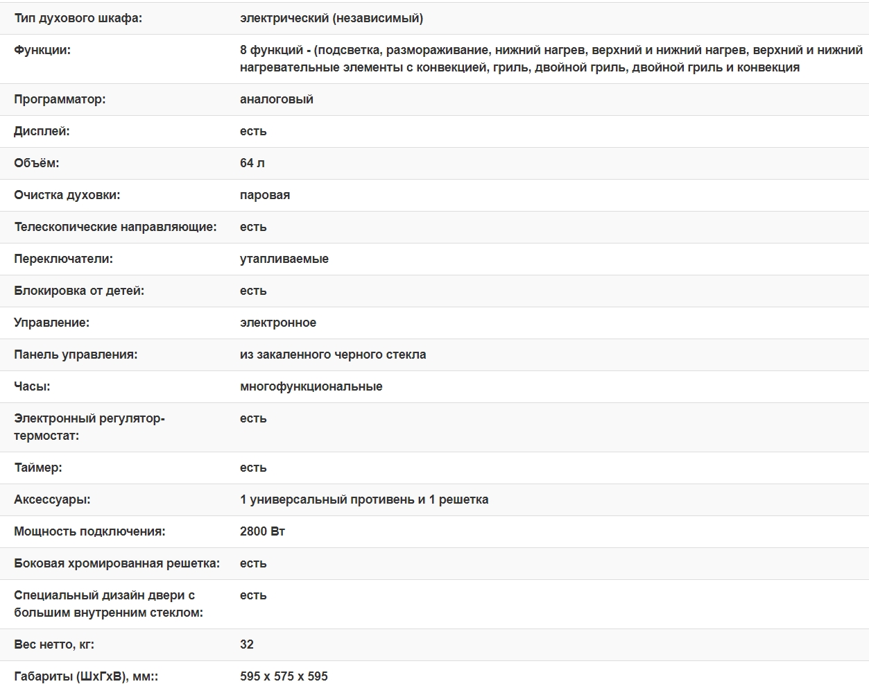 Электрический духовой шкаф Weissgauff (Вайсгауф) EOV 281 PDB