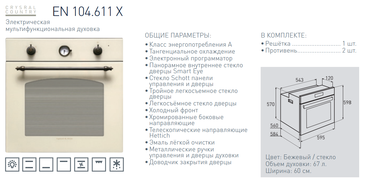 Электрический духовой шкаф Zigmund-Shtain (Зигмунд-Штайн) EN 104.611 X