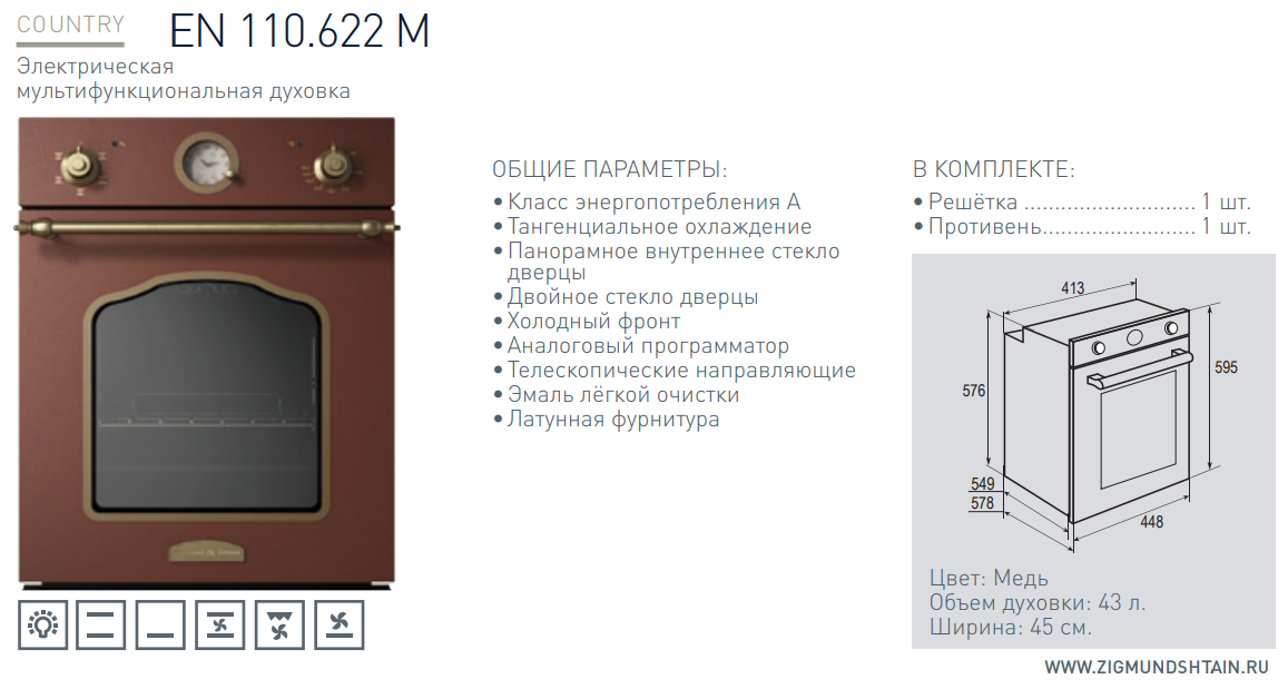 немецкой фирмой Zigmund-Shtain. Духовой шкаф выполняет