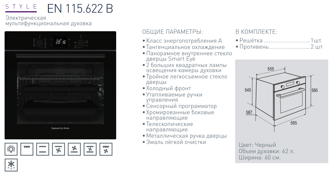Электрический духовой шкаф Zigmund-Shtain (Зигмунд-Штайн) EN 115.622 B