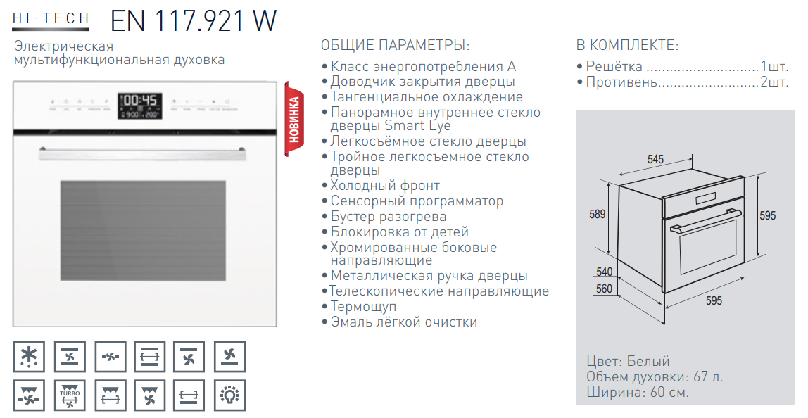 Электрический духовой шкаф Zigmund-Shtain (Зигмунд-Штайн) EN 117.921 W + ВИДЕО О ТОВАРЕ