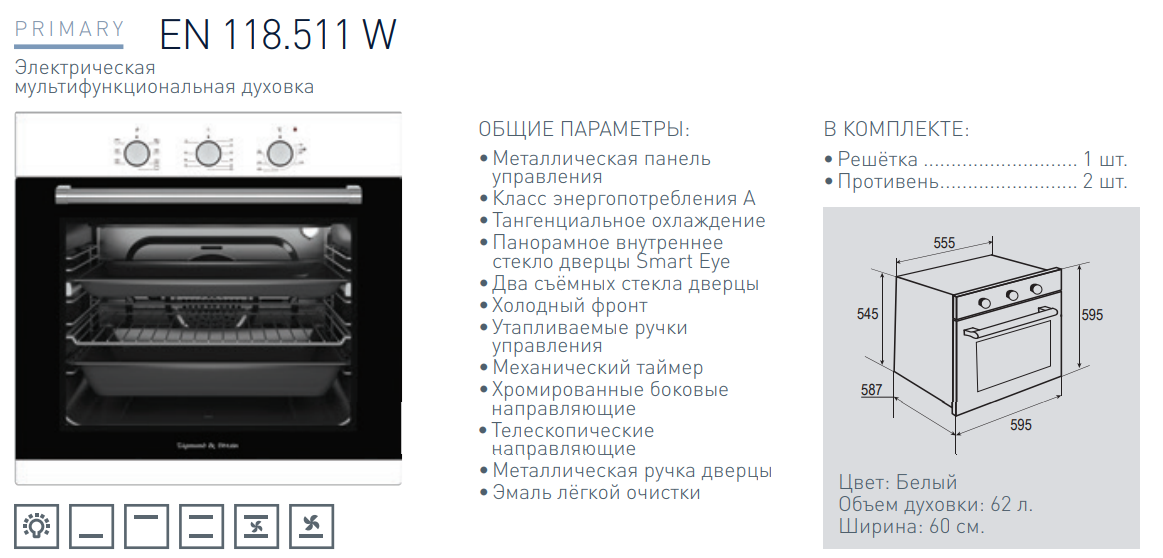 Электрический духовой шкаф Zigmund-Shtain (Зигмунд-Штайн) EN 118.511 W