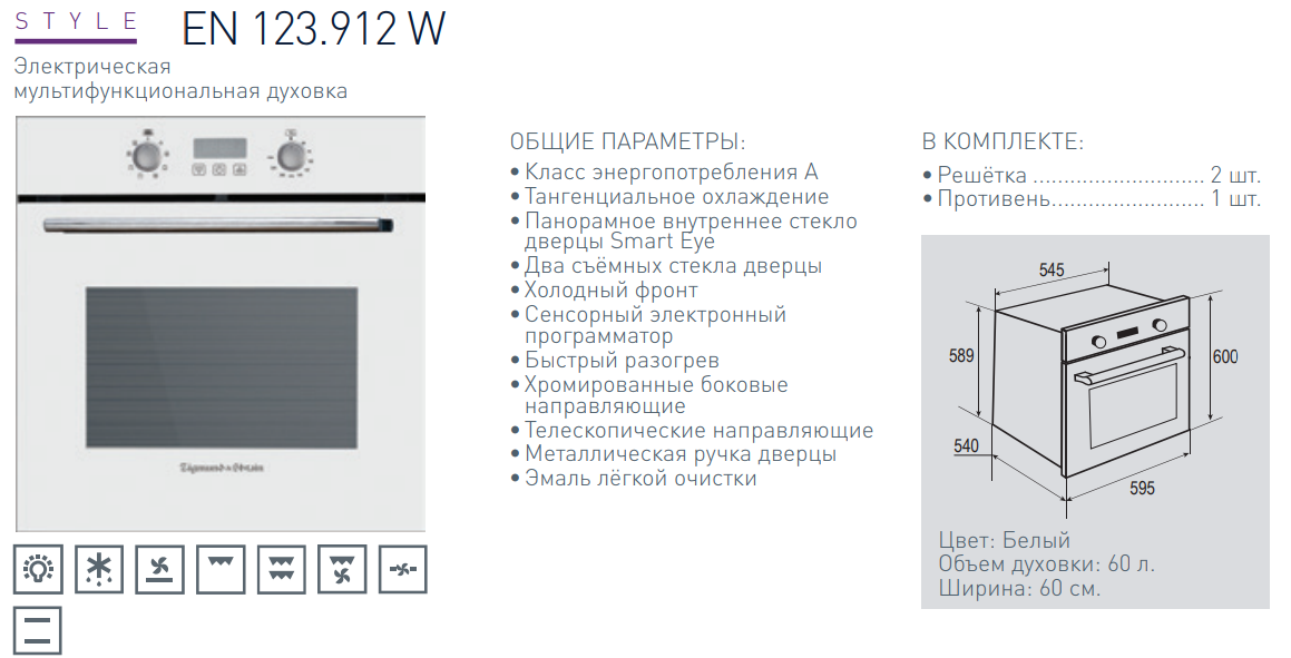 Электрический духовой шкаф Zigmund-Shtain (Зигмунд-Штайн) EN 123.912 W