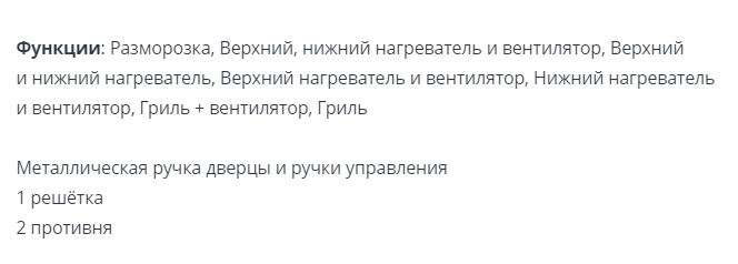 Объём духовки |