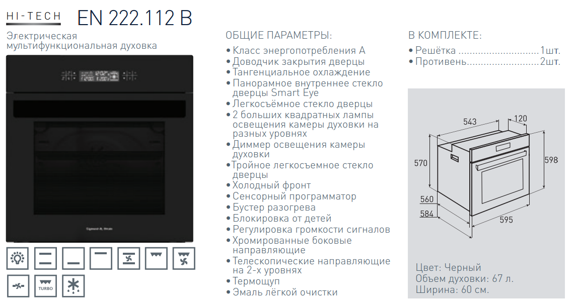 Электрический духовой шкаф Zigmund-Shtain (Зигмунд-Штайн) EN 222.112 B