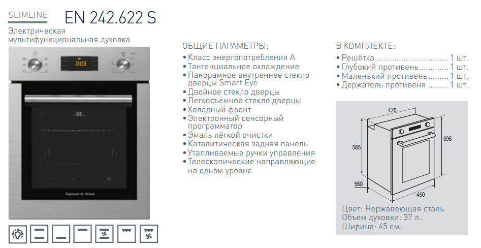 Электрический духовой шкаф Zigmund-Shtain (Зигмунд-Штайн) EN 242.622 S
