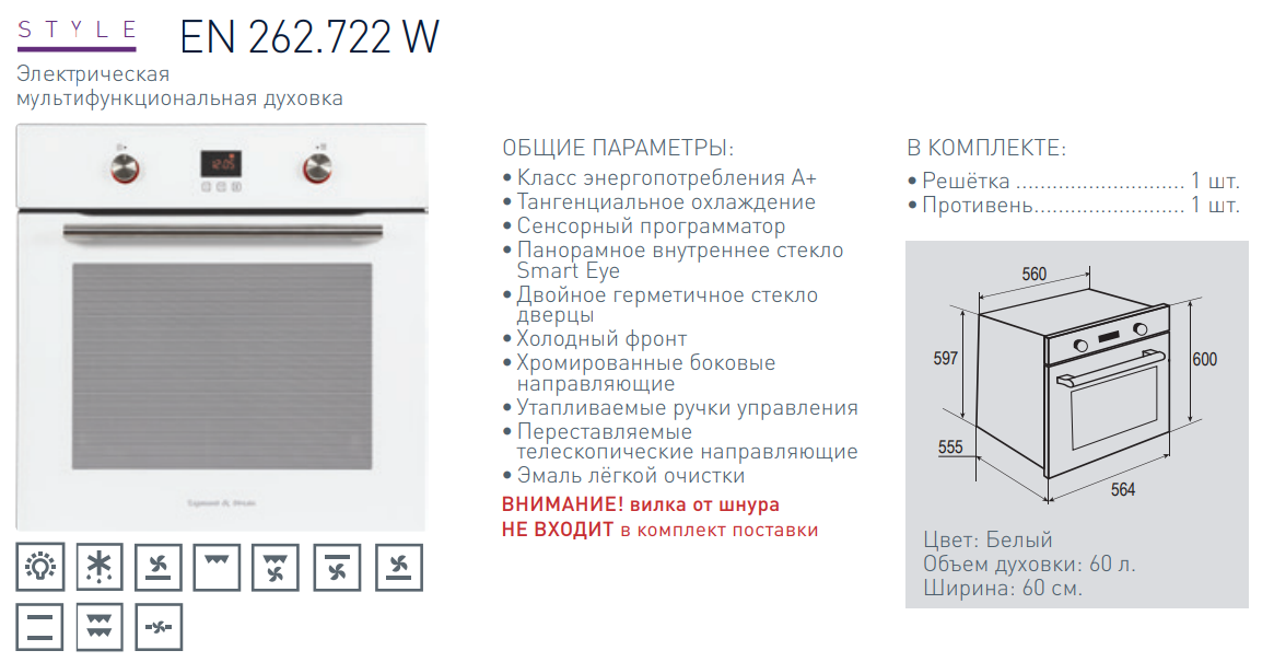 Электрический духовой шкаф Zigmund-Shtain (Зигмунд-Штайн) EN 262.722 W
