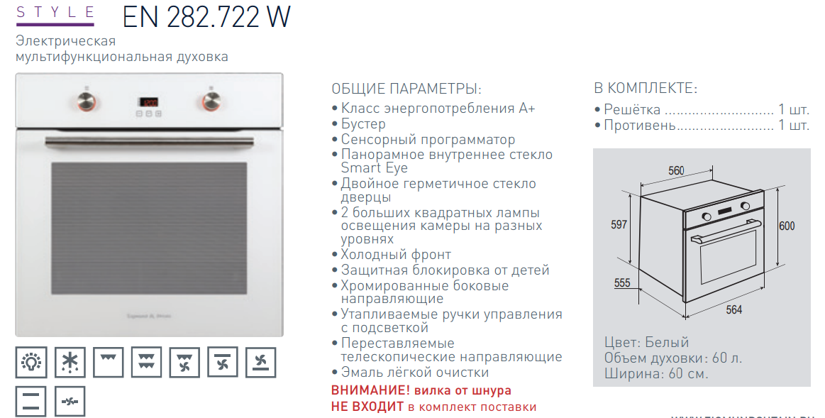 Электрический духовой шкаф Zigmund-Shtain (Зигмунд-Штайн) EN 282.722 W
