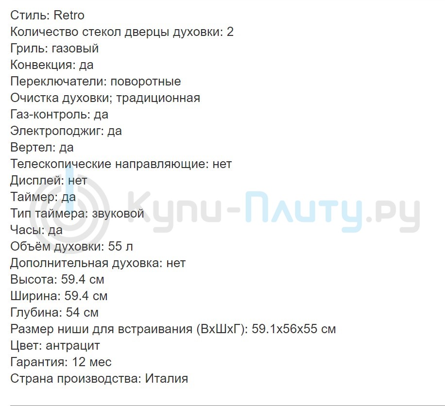 Габариты духовки