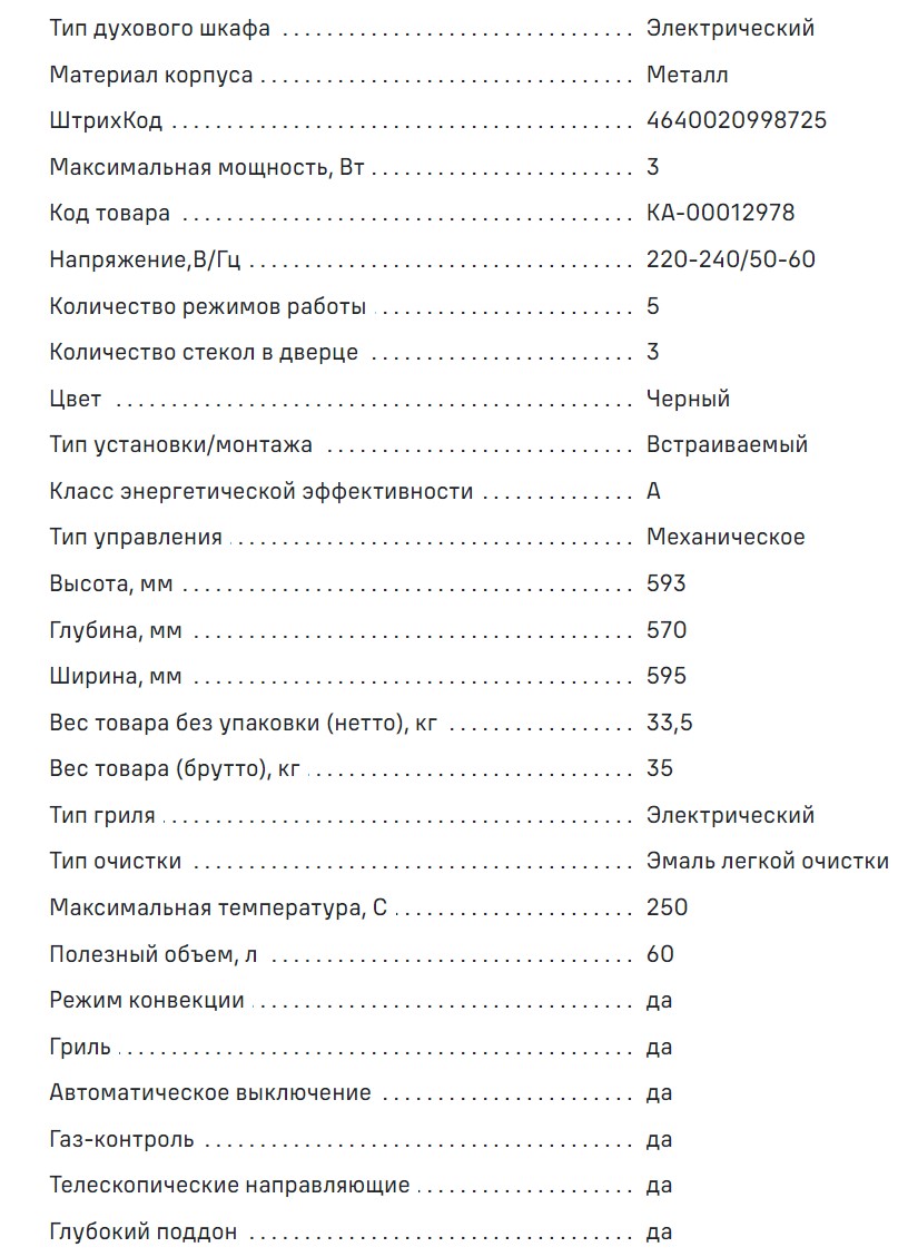 Объём духовки |