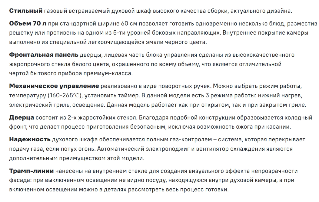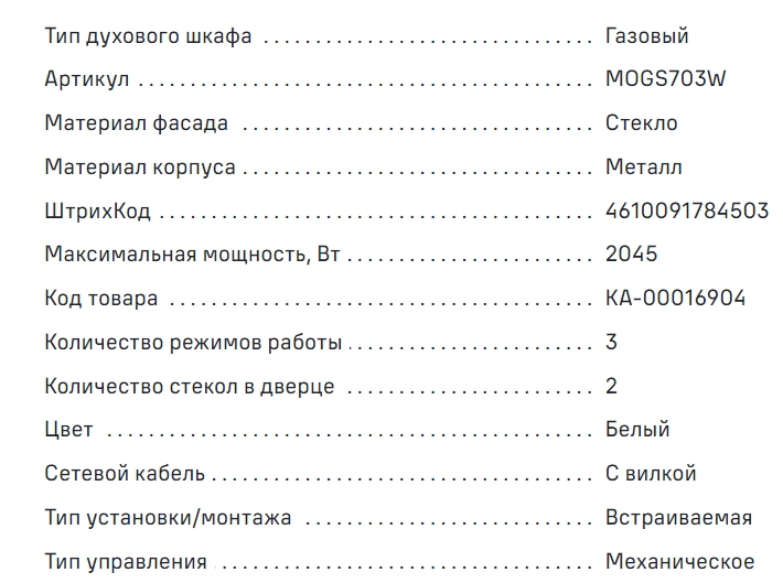 Газовый духовой шкаф MAUNFELD (Маунфилд) MOGS703W