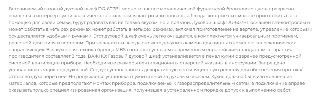 Газовый духовой шкаф MBS DG-607BL