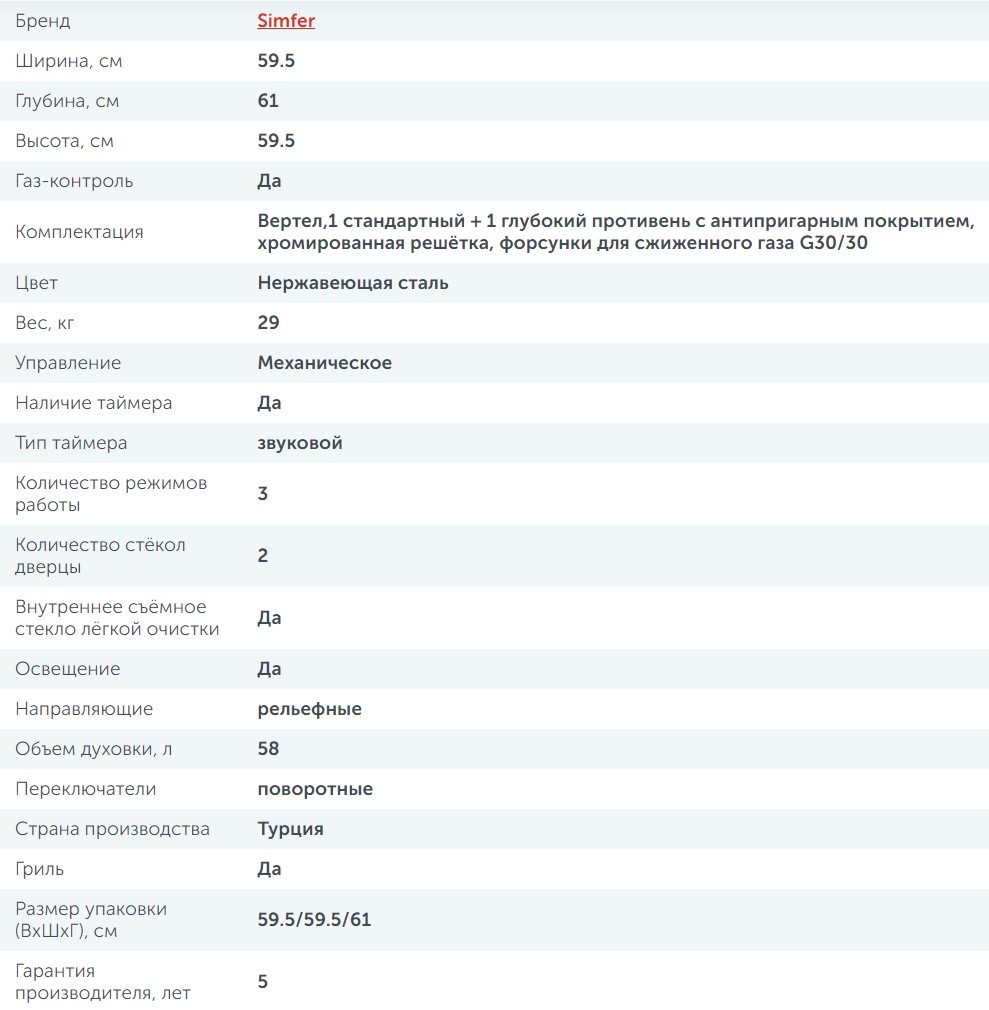 Газовый духовой шкаф Simfer (Симфер) B6GM12016