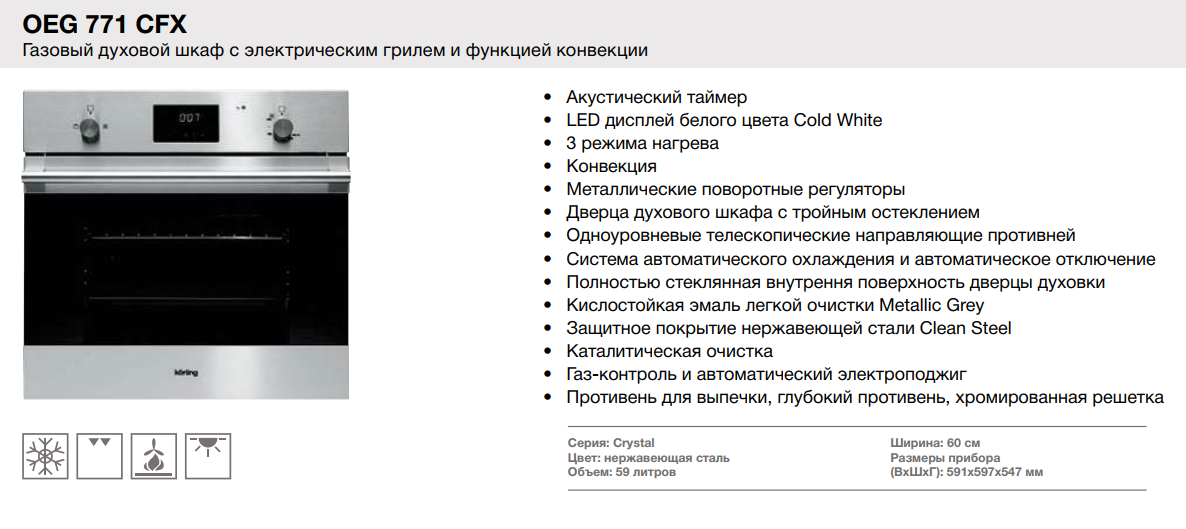 функцией звукового сигнала окончания приготовления Новые модели газовых духовых шкафов Korting