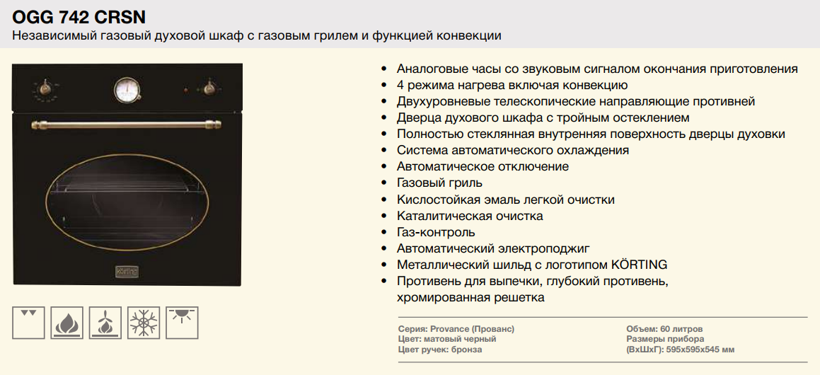 Газовый духовой шкаф Korting (Кёртинг) OGG 742 CRSN
