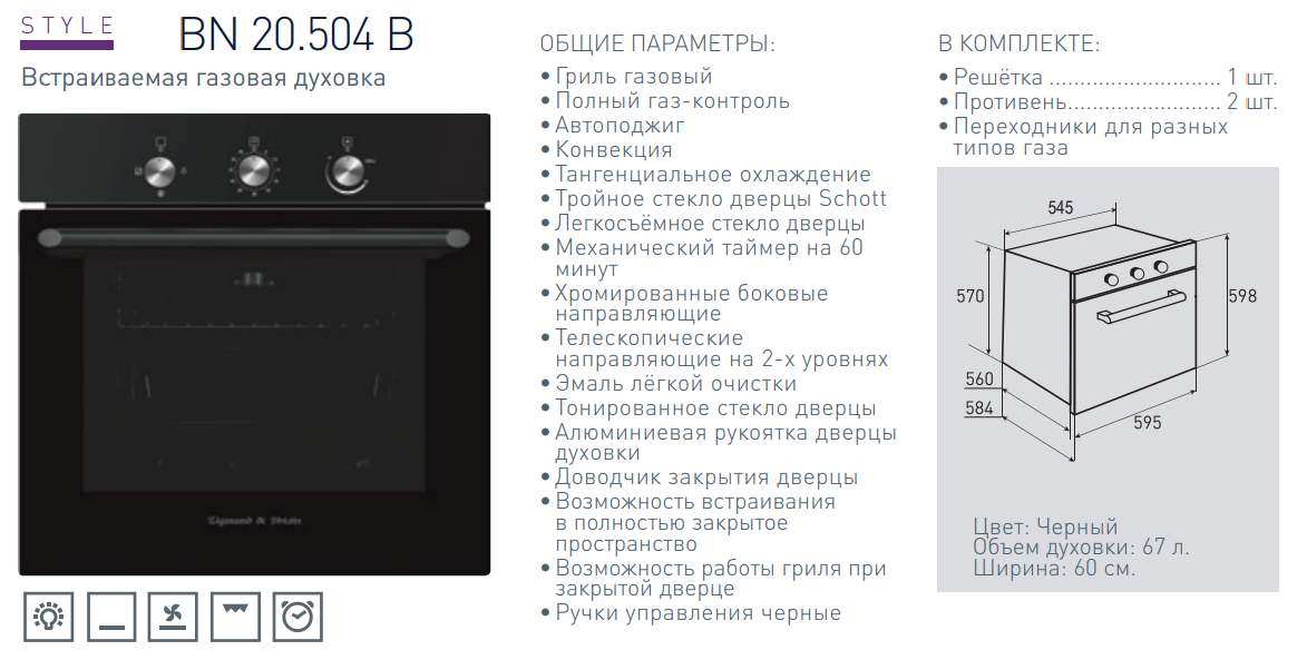Газовый духовой шкаф Zigmund-Shtain (Зигмунд-Штайн) BN 20.504 B