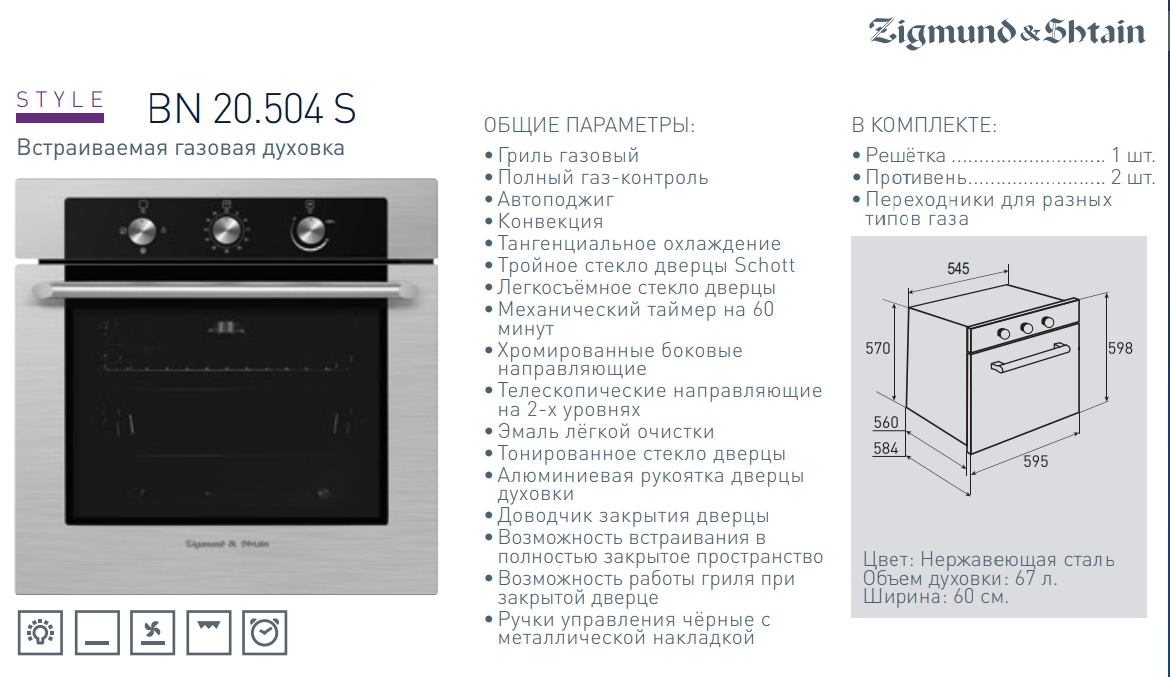 Газовый духовой шкаф Zigmund-Shtain (Зигмунд-Штайн) BN 20.504 S