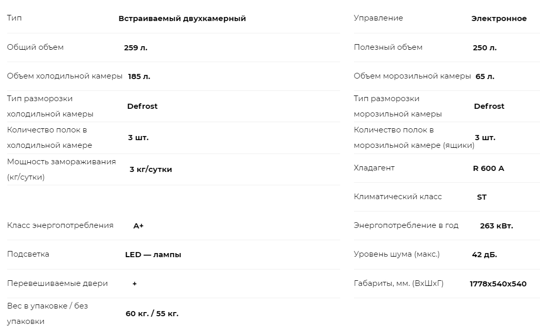 Встраиваемый холодильник Lex (Лекс) RBI 250.21 DF